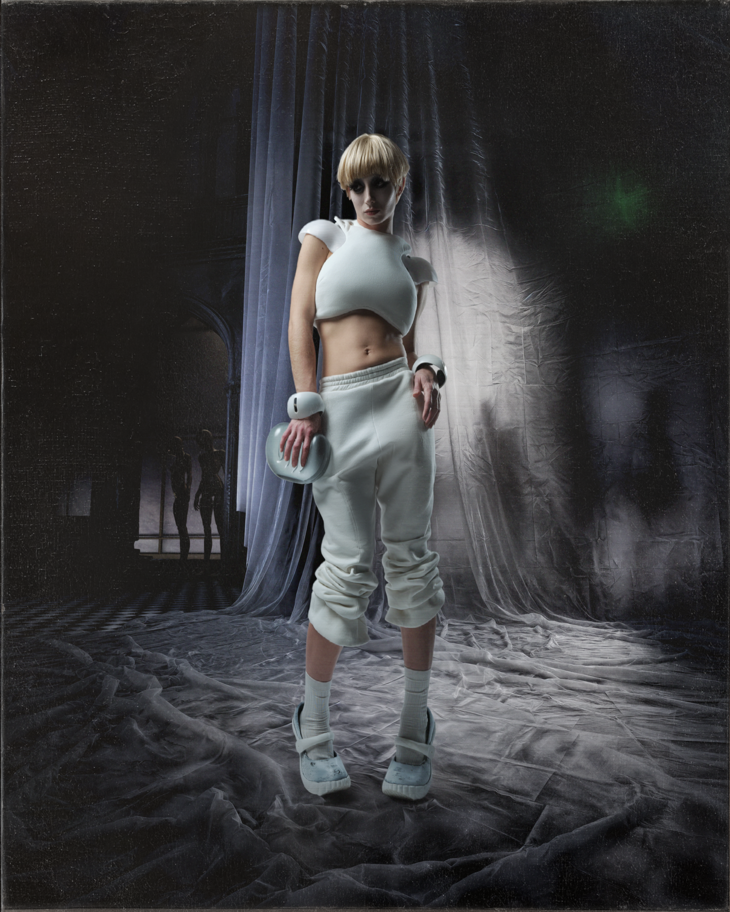 Each collection is a narrative fragment of a larger universe, in which garments become futuristic artifacts designed using advanced digital techniques. Produced locally in our Paris workshop, pieces (garments, shoes, accessories) are designed directly in 3D and printed without prototyping, according to an on-demand model that limits waste, transport, and inventory.